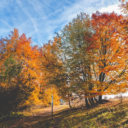 Wenn die Oktobersonne noch einmal wärmende Strahlen über die Berge und Kuppen schickt, erstrahlt die Rhön in einem ganz besonderen Glanz. Die bunten Laubmischwälder leuchten in allen Farben des Herbstes und von den Höhenzügen genießt man einen herrlichen Blick in diese malerische Landschaft.